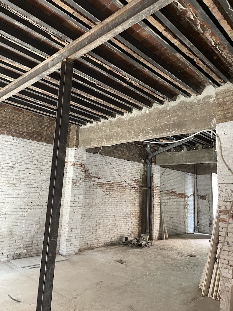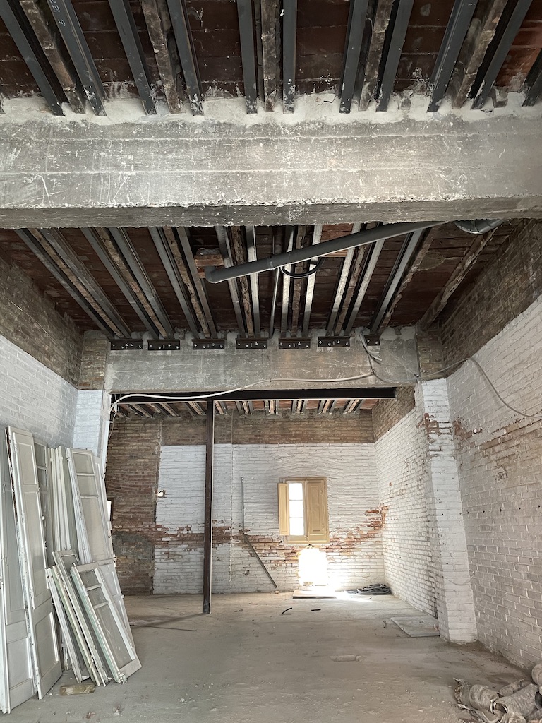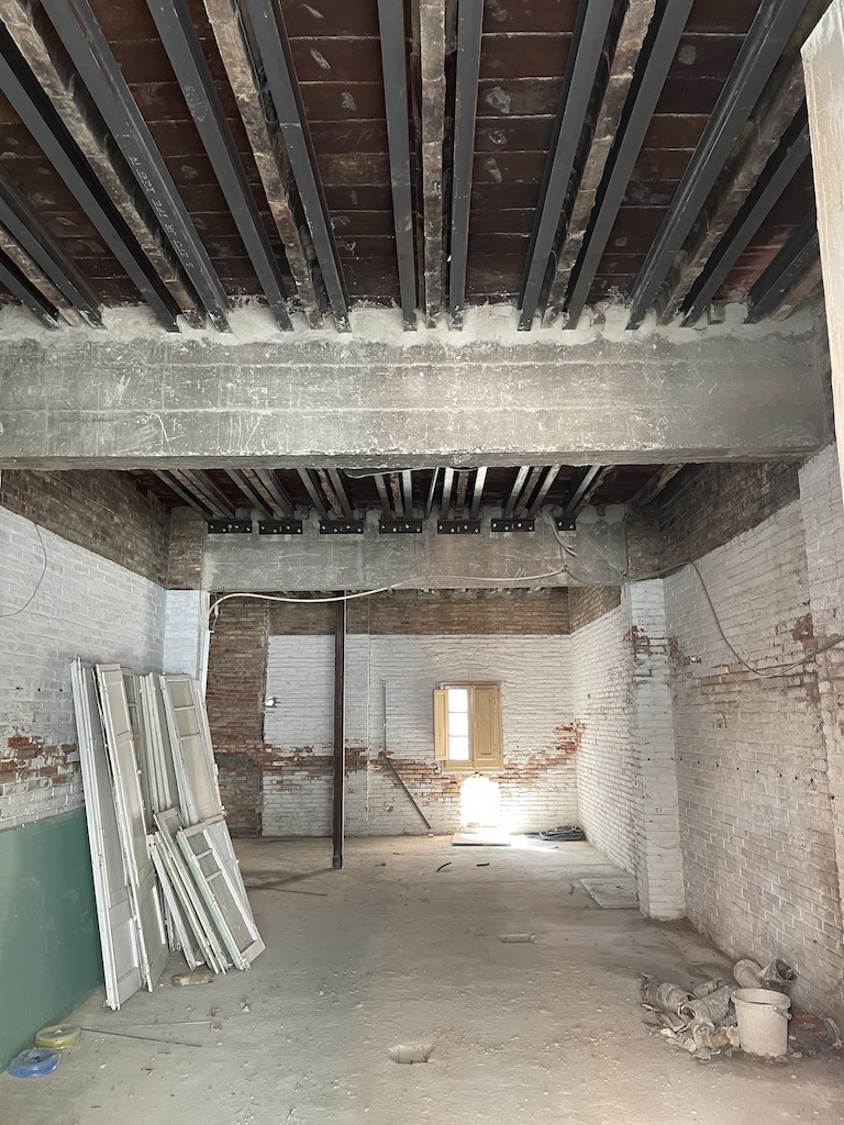 Acondicionament d’un local i afectació estructural d’un edifici a Magi Morera. Les nostres tasques en aquest cas van consistir en la redacció del projecte del reforç, fer baixants amb pendents noves i recrescut del terra.