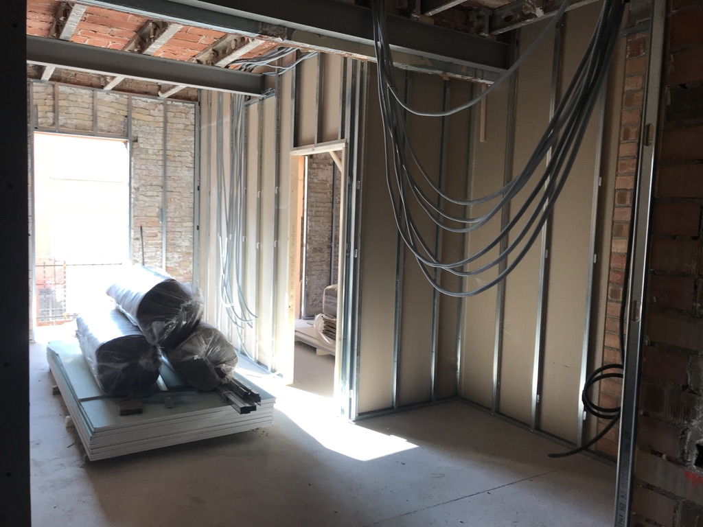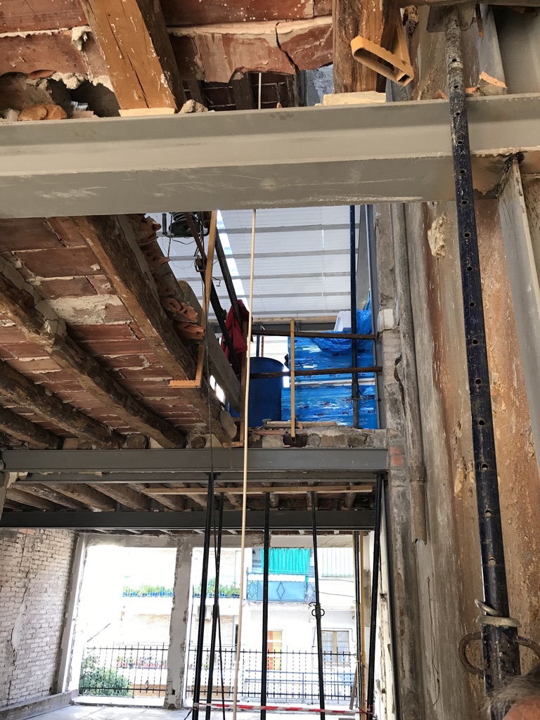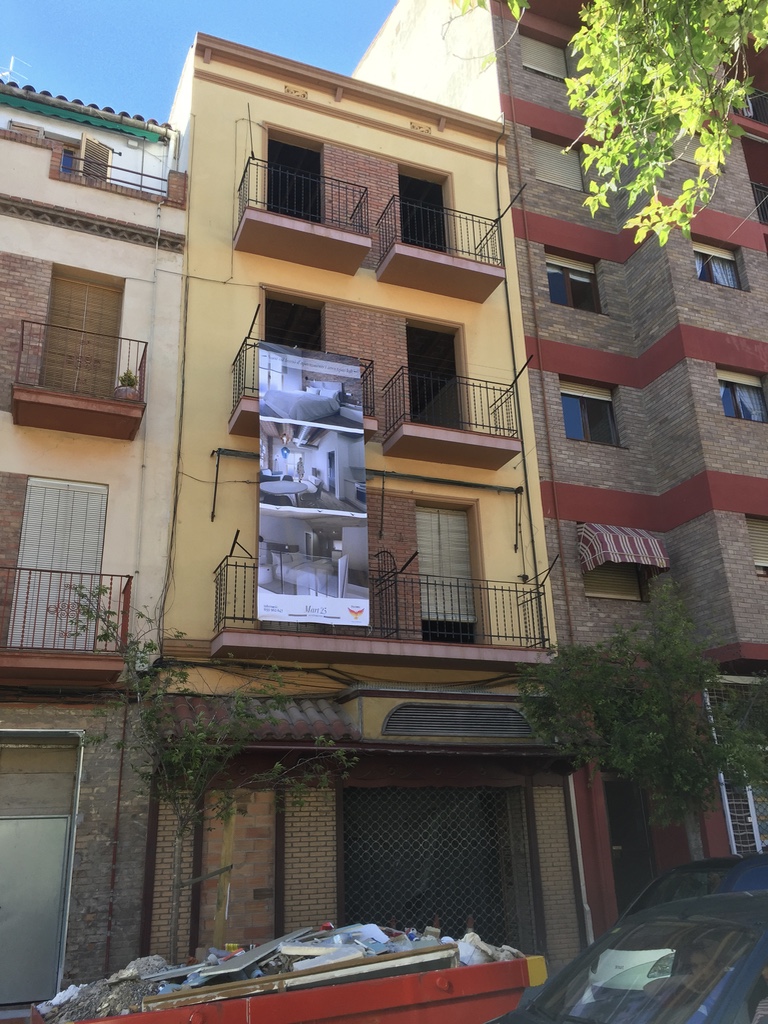 Treballs de rehabilitació integral d’un edifici al centre de Lleida. Es va passar de 3 vivendes inicials a 6 apartaments i un espectacular àtic. Realització de projecte de gran rehabilitació, col·locació d’ascensor, distribució, tria de materials i mobiliari.